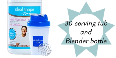 30-serving tub of IdealShape meal replacement shakes (vanilla or chocolate) and Blender bottle